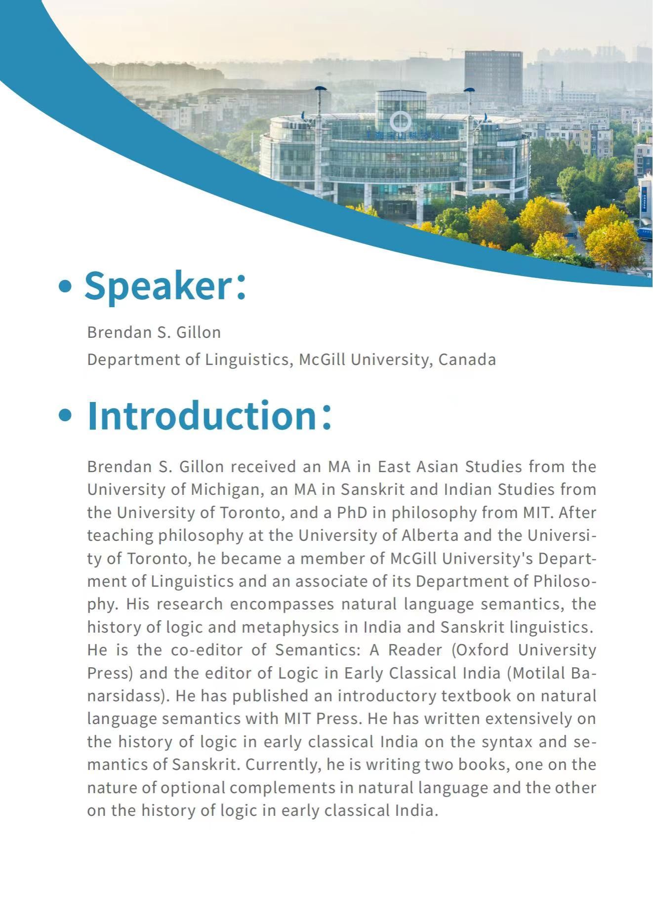 加拿大麦吉尔大学(McGill University)Brendan S. Gillon教授语言学专题系列讲座